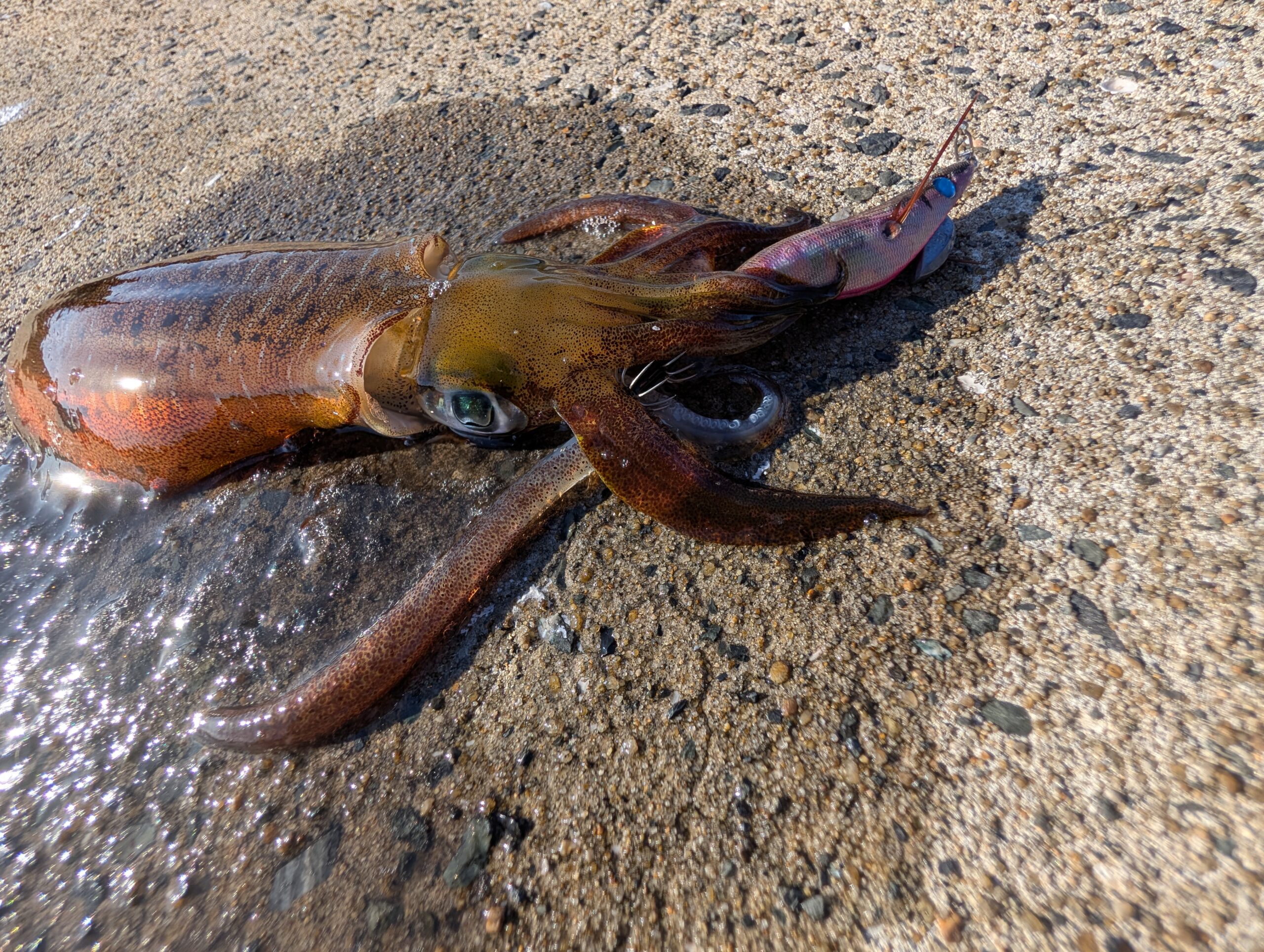 後輩とエギングへ!釣り方を教えて欲しいとのことだったので、安全な堤防をランガン!! 解説しながら、先に釣ってしまったので、後半はほぼレクチャーしてました。最後に後輩も釣れて楽しい釣りとなりました。