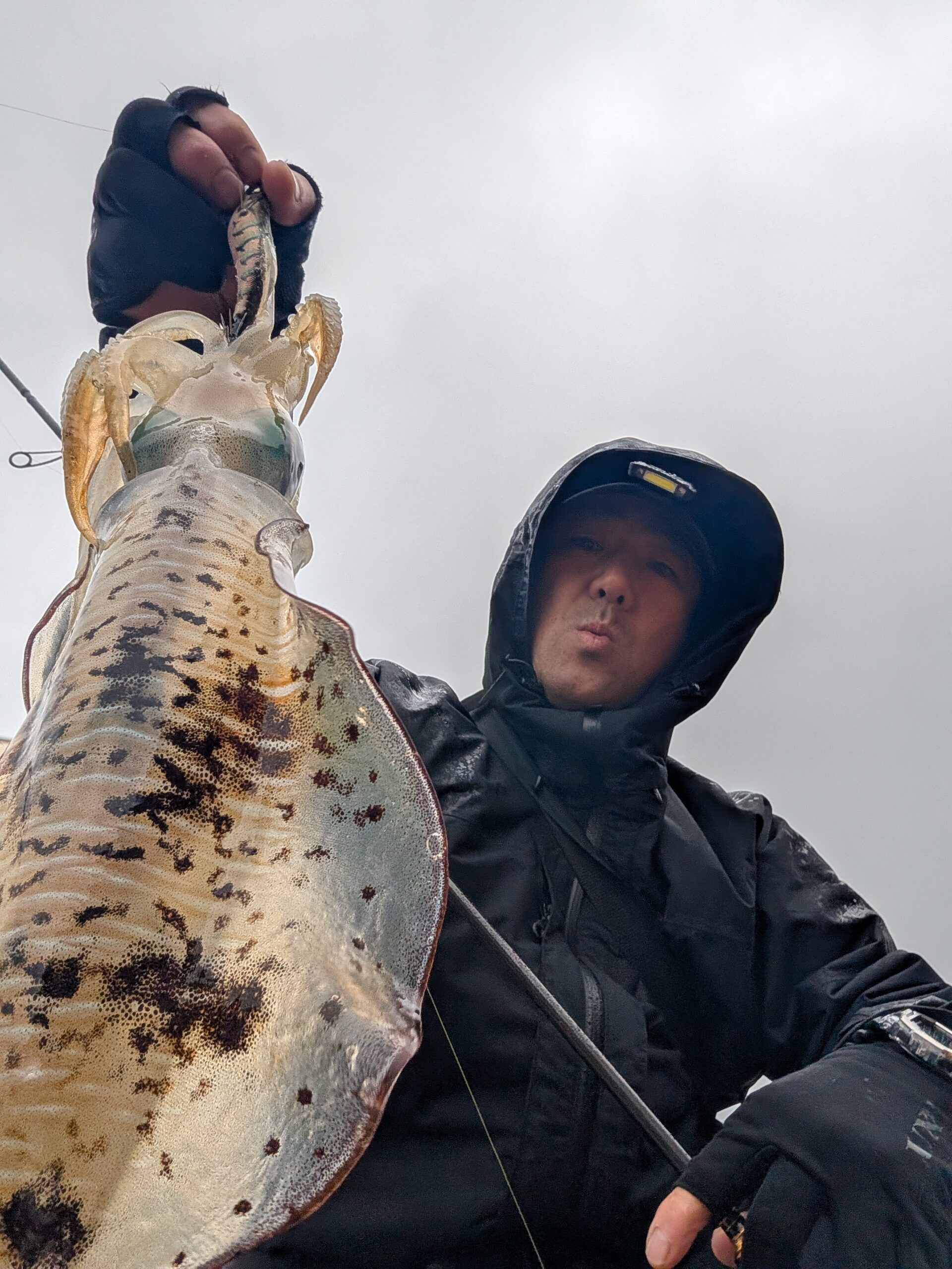仕事を早く切り上げて地磯へ! 雨が降ったり止んだりの嫌な天気でしたが、海中のイカはまずまずな活性!暗くなる前に連発し、暗くなってからはアタリもなくなり終了!