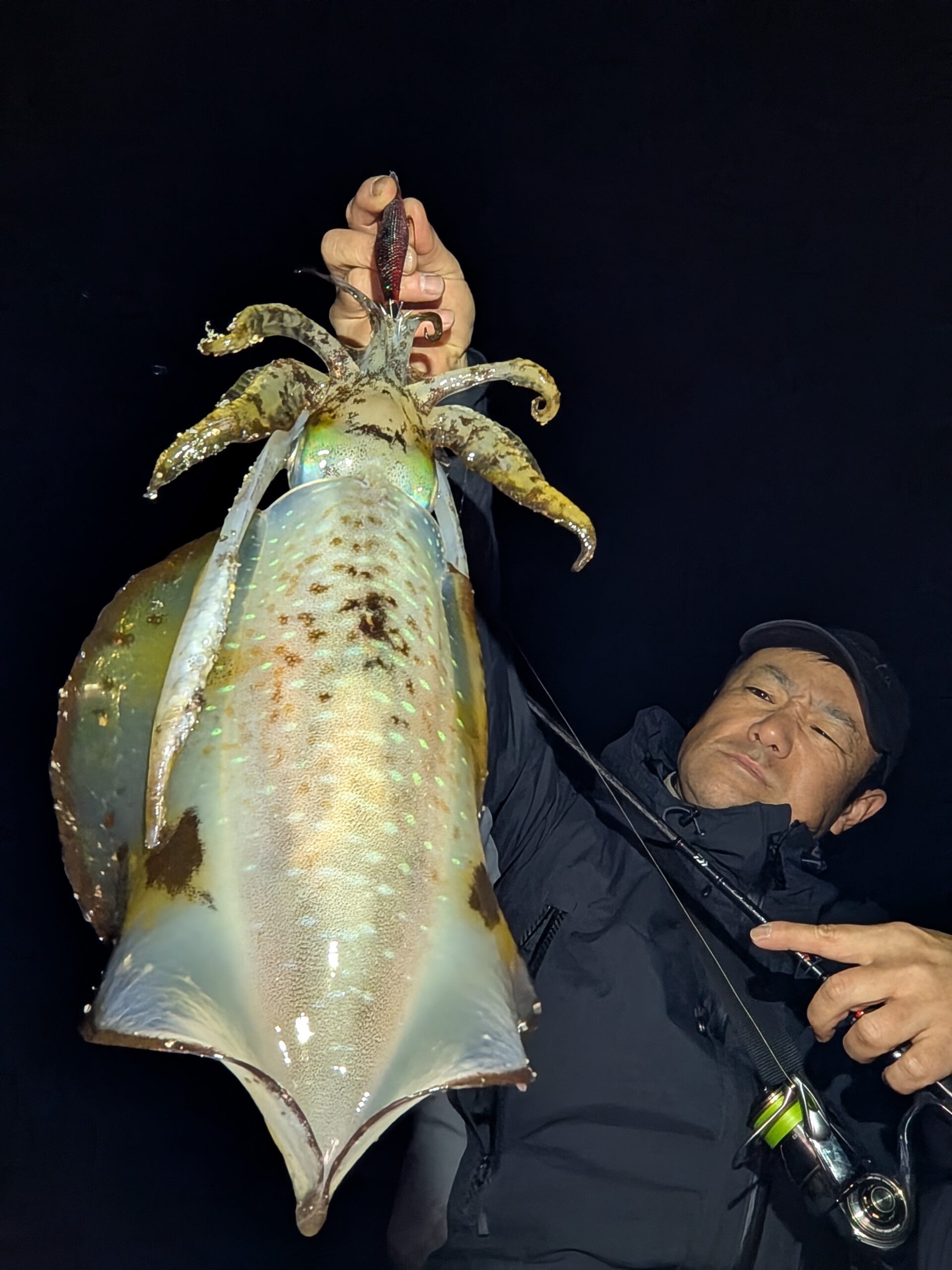 本日もしごおわでエギングへ。 今日はウネリが強く貸切(笑) 明るいうちからヒット! 少しずつ移動しながら暗くなる直前に1300㌘をゲット! そこからはポロポロ釣れて、場所を変えても連発はせず終了。