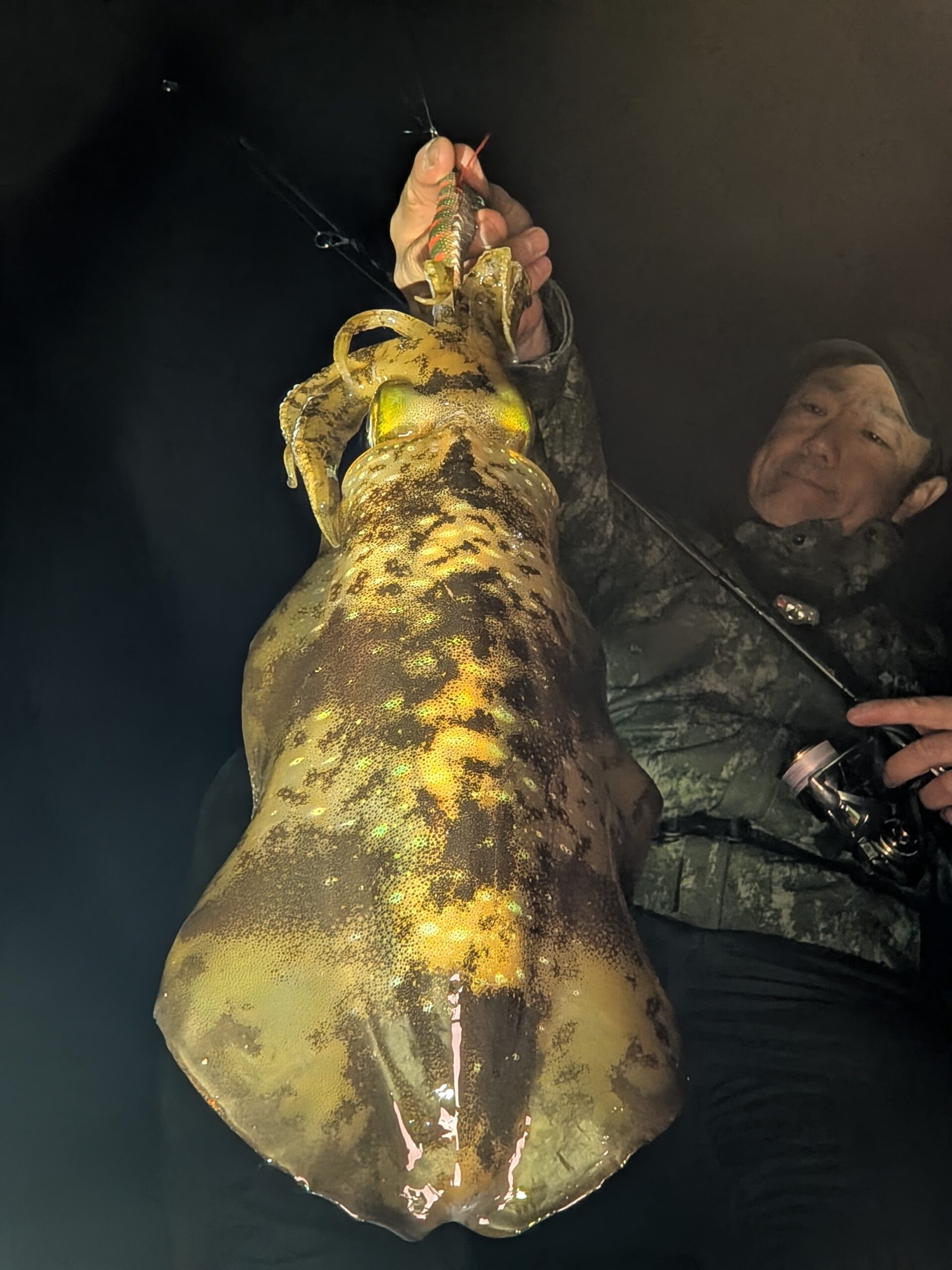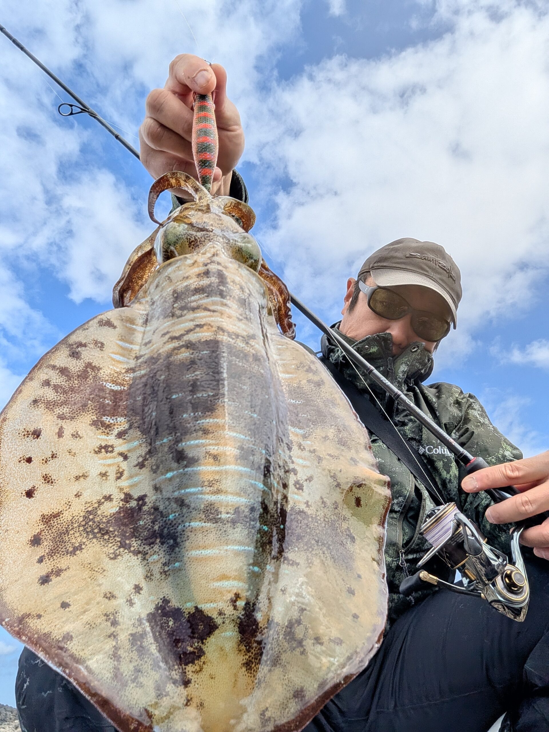 夜勤あけで昼過ぎから地磯へ!シャローからイカが消えて2時間あたりなし(T_T) ようやく水深のある場所で何とか㌔含む連発!! しかし後が続かず(汗) 夕方から堤防に入り回遊待ちしましたが、いつきの5〜800㌘を3杯釣って終了